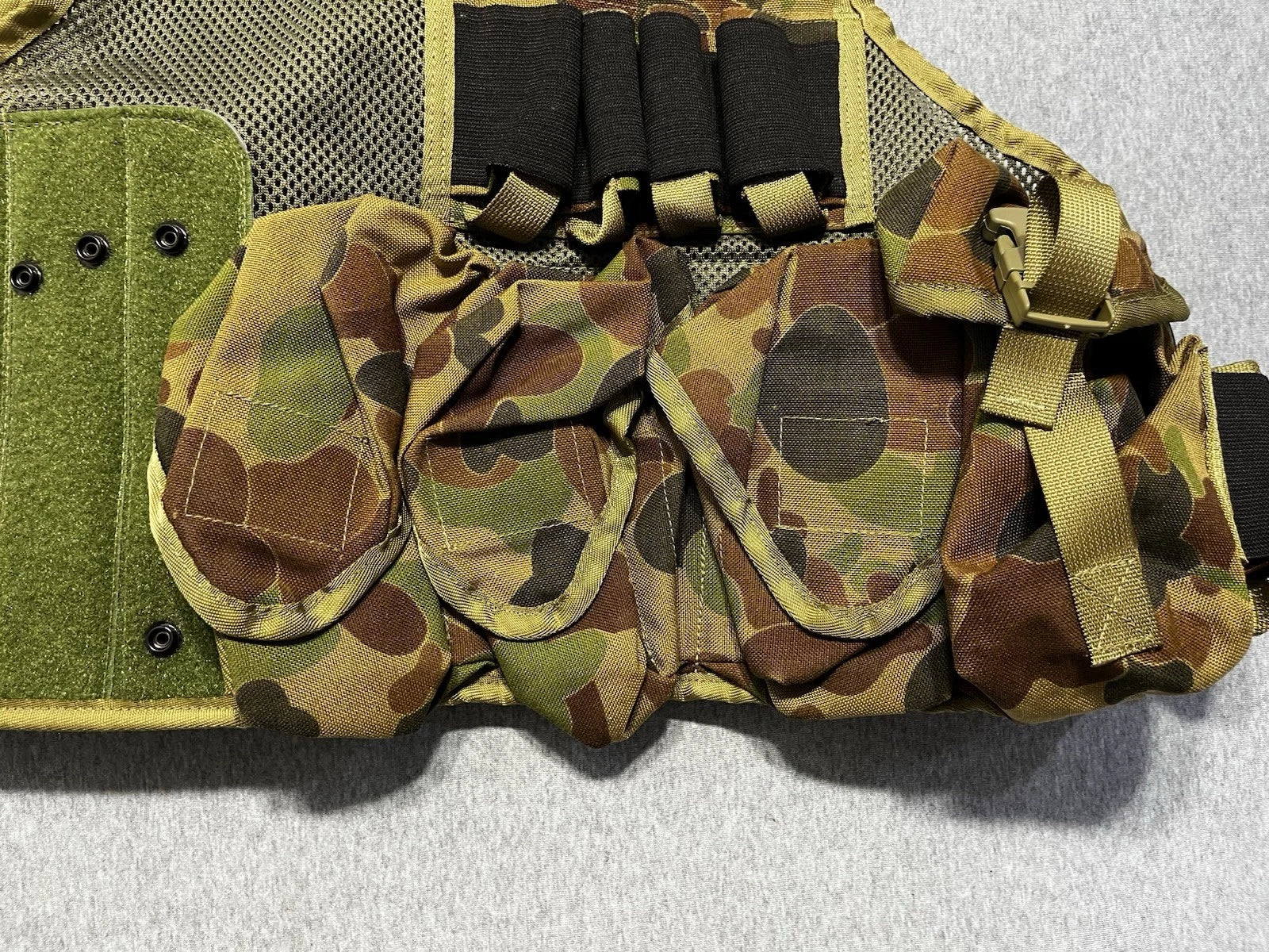 The DPCU Recovery Vest is a rare piece of Australian military equipment associated with specialist maritime operations. According to collector research, this vest was issued to Special Forces boarding teams—possibly Tactical Assault Group (TAG) elements—rather than standard Navy boarding parties or Clearance Diving Teams (CDT). It is most notably documented during the Tampa Affair in August 2001, where similar vests were reportedly worn by Australian boarding personnel involved in the operation. Manufactured in the distinctive Australian DPCU (Disruptive Pattern Camouflage Uniform) pattern, the vest was designed to carry recovery and mission-essential equipment during maritime boarding tasks. Due to its limited documented use and connection to a specific historical event, the DPCU Recovery Vest is considered a scarce and desirable item among collectors of Australian militaria. This item can be considered to be in very good condition.