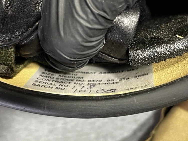 British Army Mk7 Combat Assault Helmet in Size Medium, dated 2010, complete with an MTP (Multi-Terrain Pattern) cover. This is the standard issue helmet used by British forces during operations in Afghanistan and later service. The helmet is in very good condition, appearing possibly unissued or very lightly used, with clean shell and cover and no obvious damage. A solid example of modern British military equipment, ideal for collectors of contemporary militaria, display, or re-enactment.